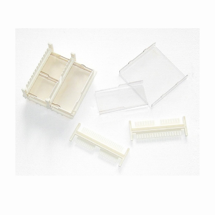 用来对核酸样品进行快速琼脂糖电泳的制胶装置,制胶可在多用制胶器的胶槽中完成(无需胶布封口),可进行96孔PCR电泳实验可放4排×25齿梳子,并支持排枪加样,三种厚度的梳子(0.7mm、1.5mm、1.2mm),并可与8道、12道排枪(移液器)兼容。本产品设计美观大方,多种规格的凝胶托盘可自由组合:12cm×12cm、6cm×12cm、12cm×6cm、6cm×6cm。